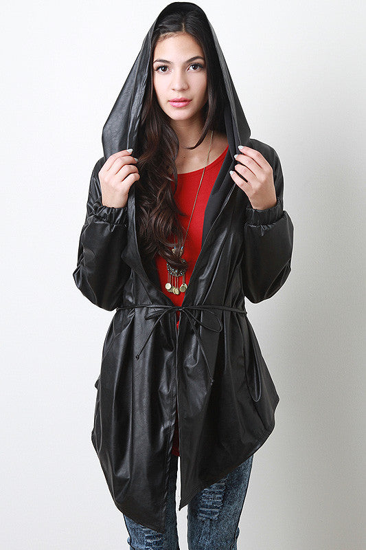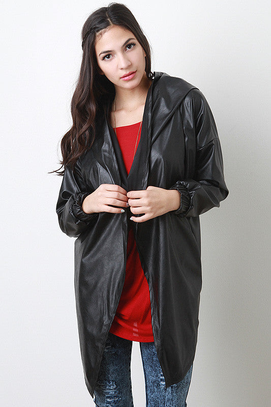 Leatherette Hoodie Jacket