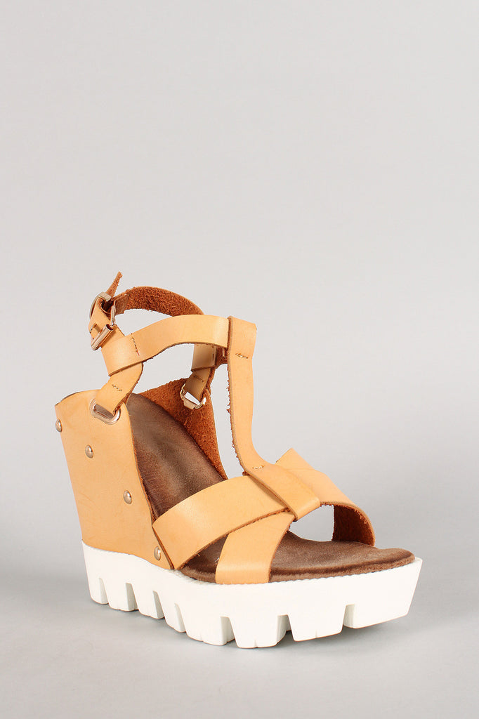 Open Toe Criss Cross Lug Sole Platform Wedge