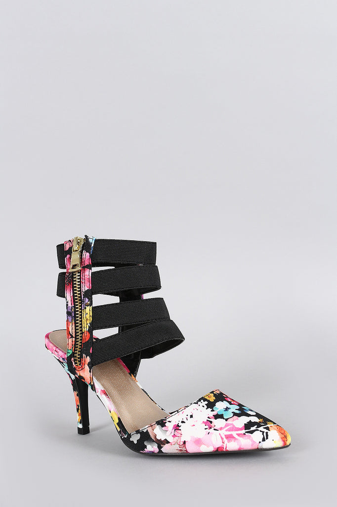 Qupid Floral Strappy Cuff Pointy Toe Pump