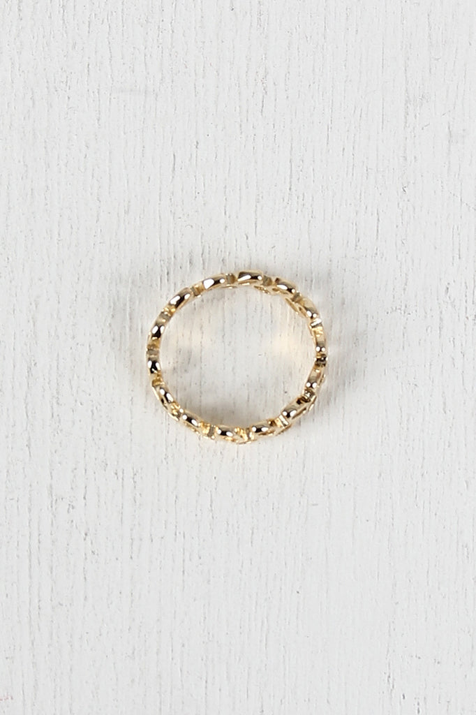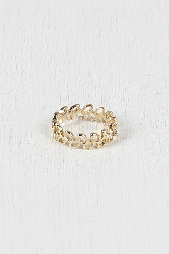 Ring with cutout ivy vine design on nonadjustable band.