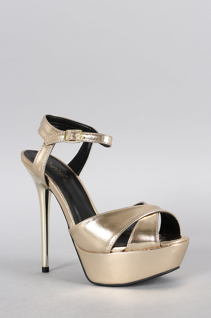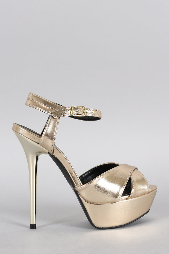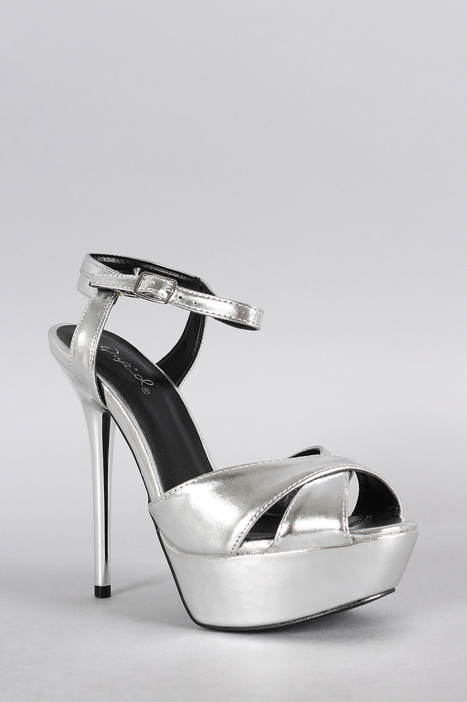 Qupid Metallic Crisscross Ankle Strap Heel