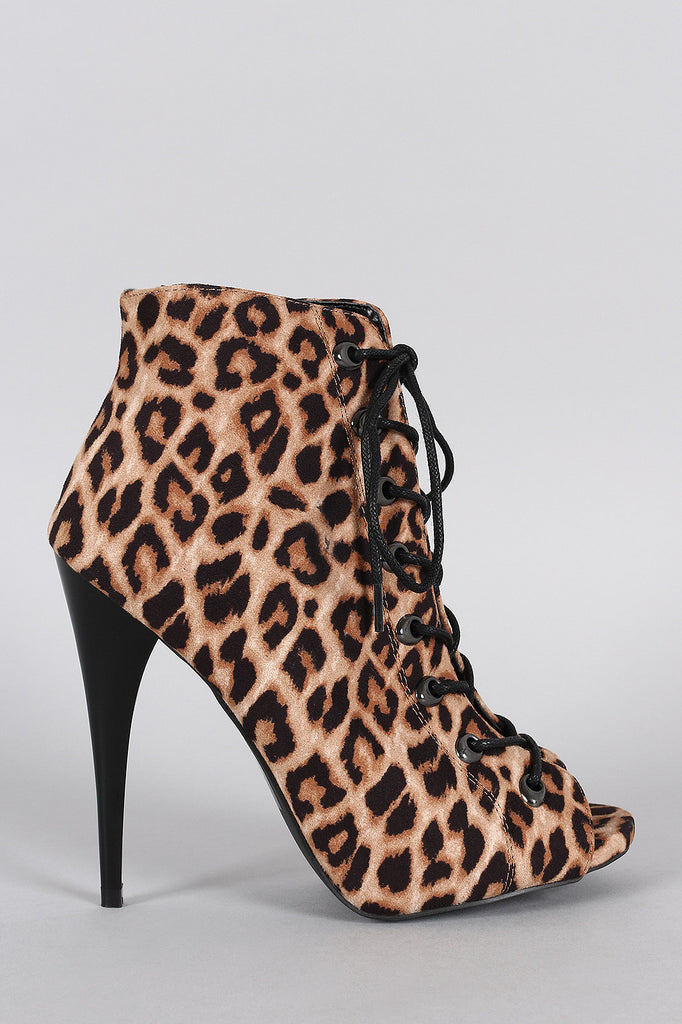 Qupid Leopard Corseting Peep Toe Bootie