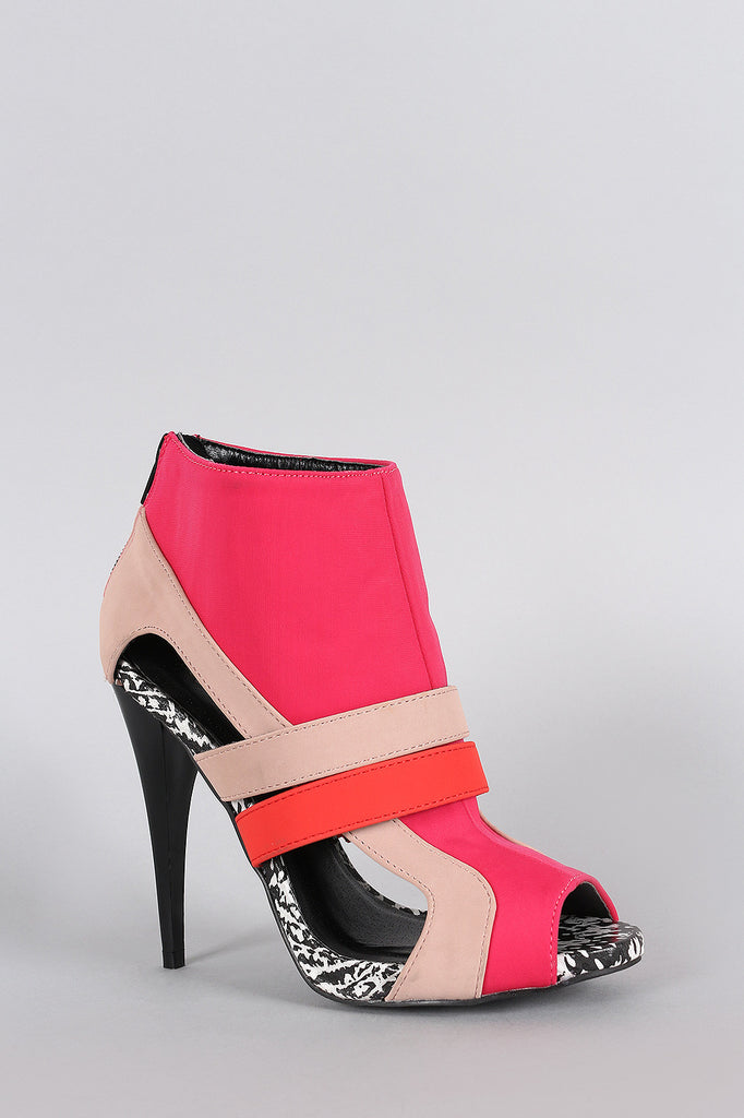 Qupid Colorblock Cutout Peep Toe Stiletto Booties