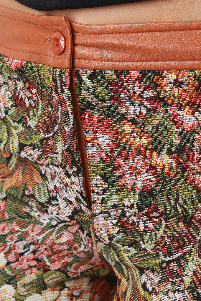 Leather And Floral Tapestry Shorts