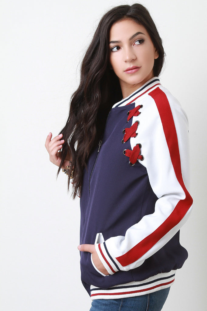 Laced Striped Zip Up Bomber Jacket