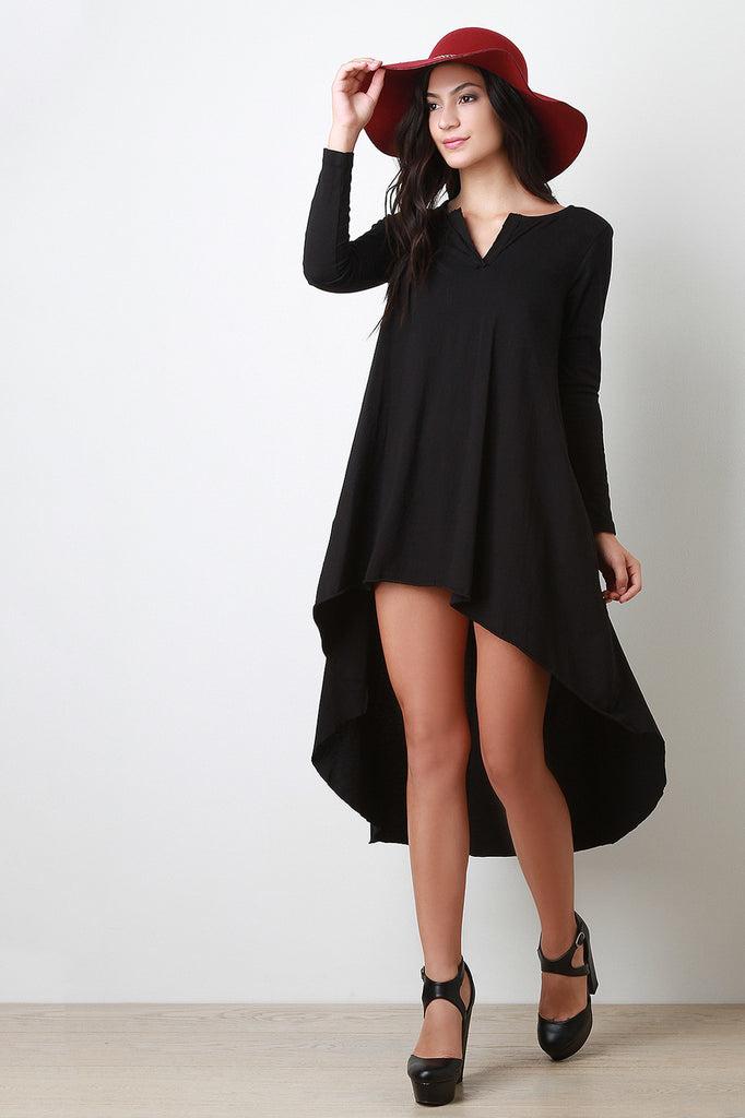 Jersey Knit Long Sleeves Raw High Low Dress