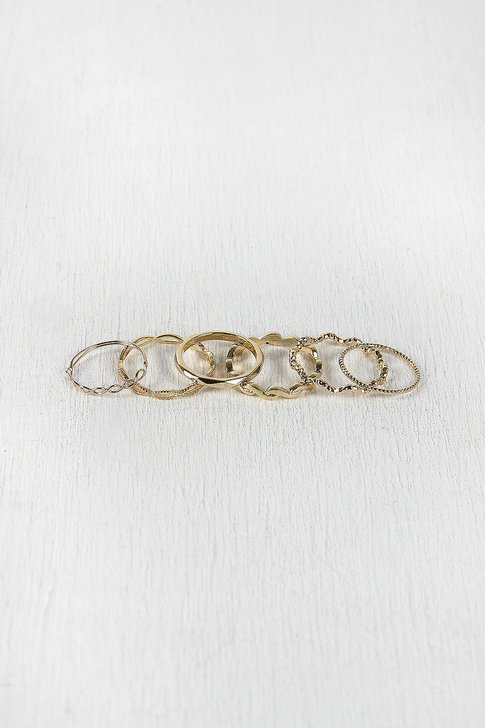 These set of rings feature several infinity squiggly lines on the band with beads, and waves bands as well. All the rings have a glossy finish. Some rings are classified as midi rings.