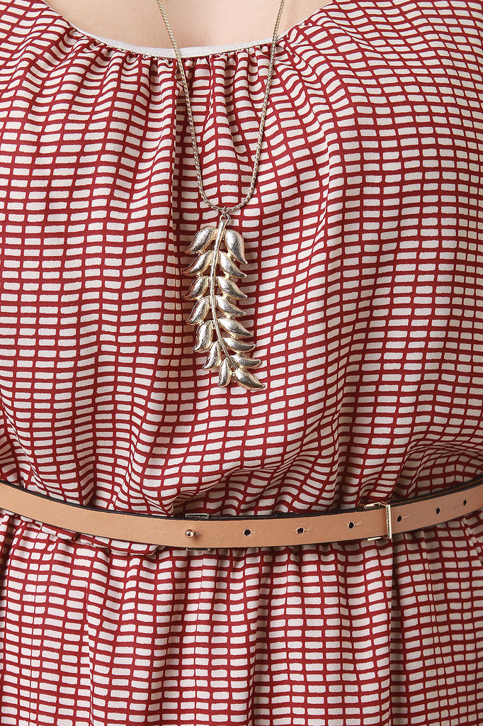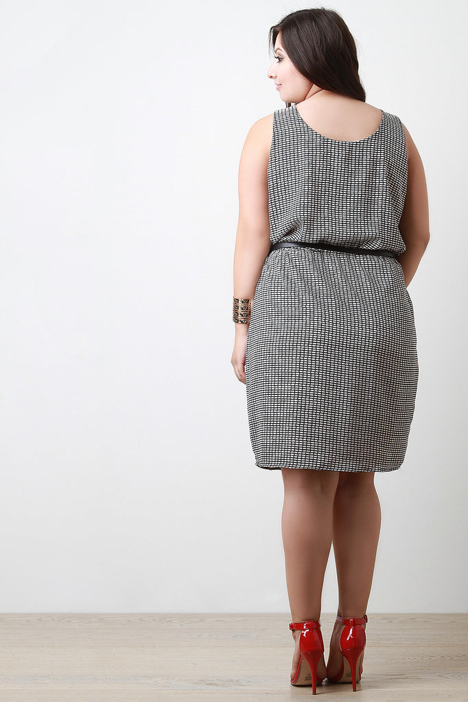 Grid Belted Sleeveless Dress