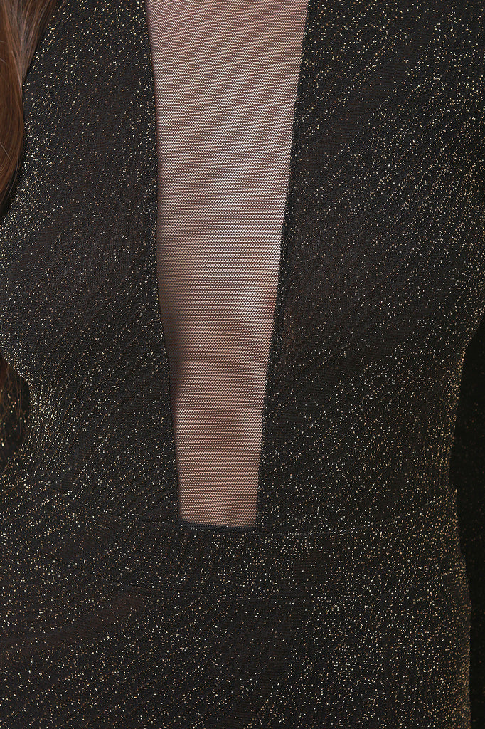 Metallic Knit Mesh Window Maxi Dress