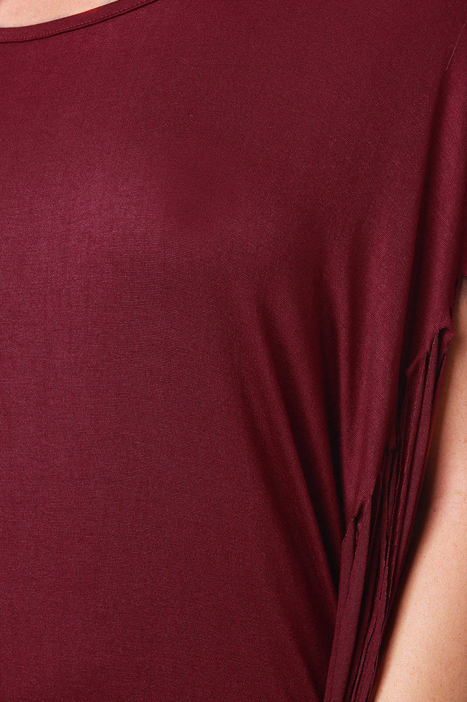 Jersey Knit Fringe Mini Poncho Dress