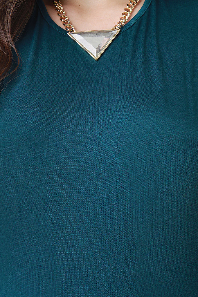 This plus size midi dress features a soft jersey knit with a round neckline and long, open sides. Accessories sold separately. 95% Rayon, 5% Spandex.